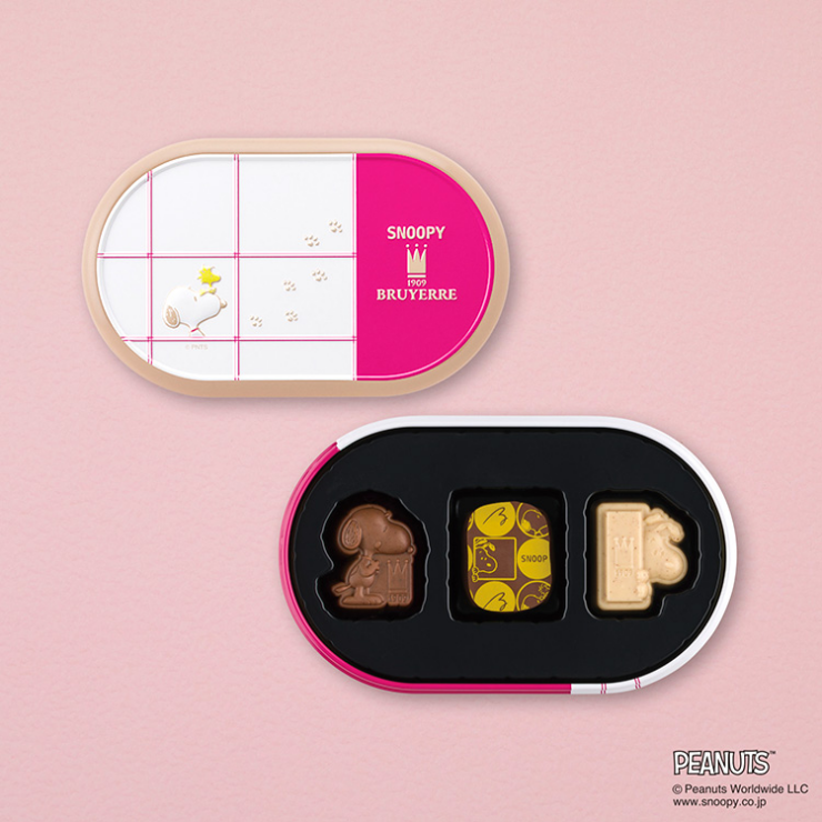 スヌーピー meets ブリュイエール エンボスティンは5種類のチョコレート入り。