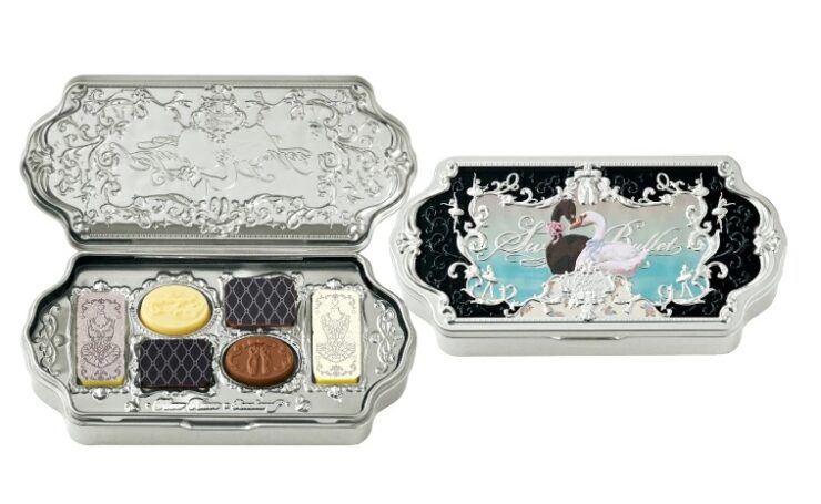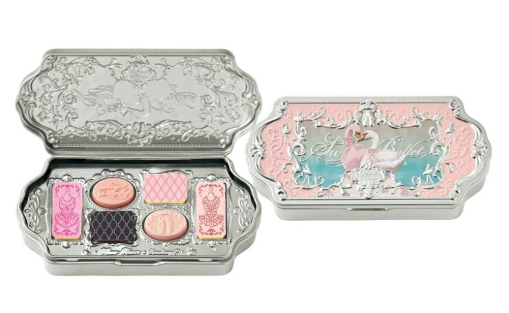 並べられたチョコレートはアイシャドウパレットそのもので、まさにコスメブランドとのコラボらしいデザインでした。