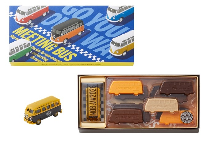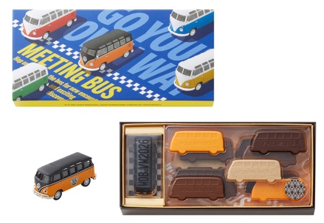 ミニチュアのフォルクスワーゲンType2(バス)型のチョコレートとバスの横顔が可愛いプレートチョコレートを詰め合わせました。