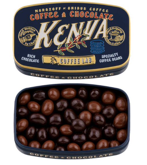 ケニア産のコーヒー豆をそれぞれに合う2種類のチョコレートでひと粒丸ごとコーティング