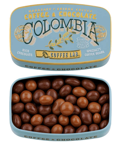 コロンビア産のコーヒー豆をそれぞれに合う2種類のチョコレートでひと粒丸ごとコーティング