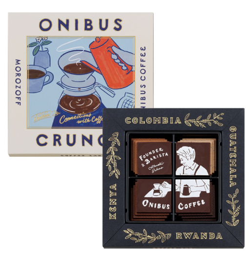 オニバスコーヒーのコーヒー豆から作ったコーヒーペーストや細かく砕いたコーヒークランチを使ったオリジナルチョコレート