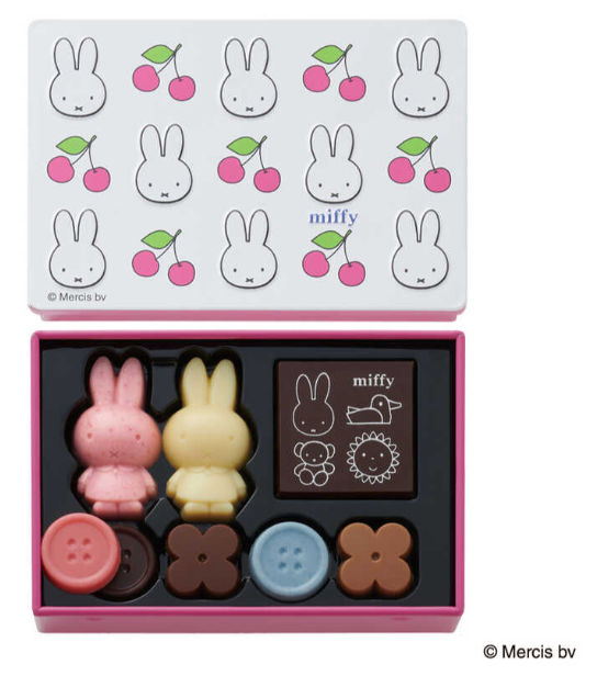 - ミッフィーとチェリーをあしらった、可愛いミニ缶に、ミッフィー型のチョコレートやキュートなプレーンチョコレートをアソート
