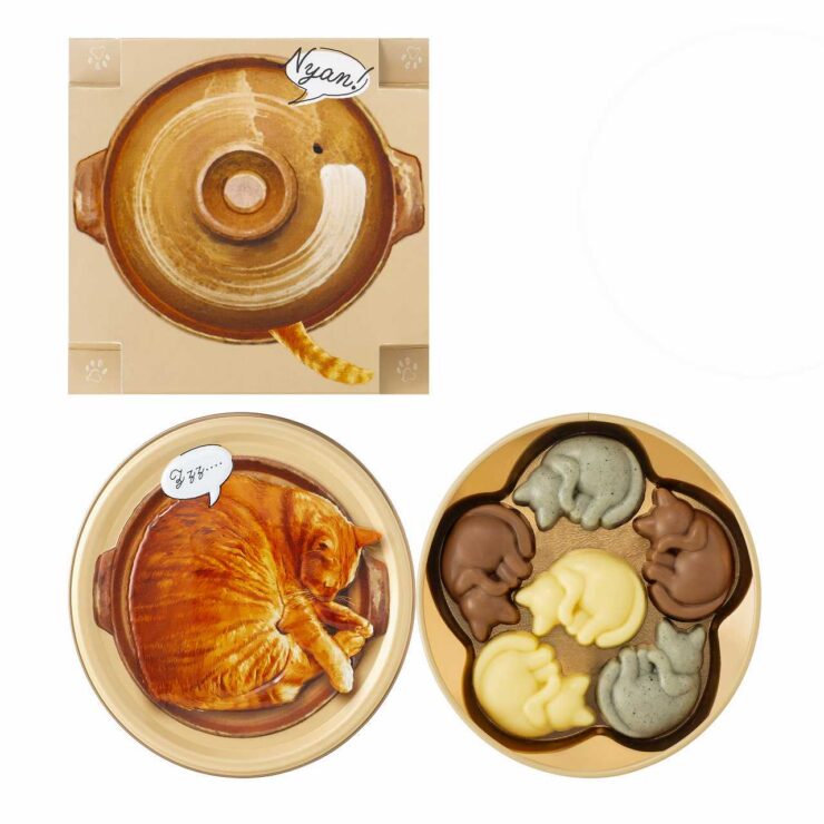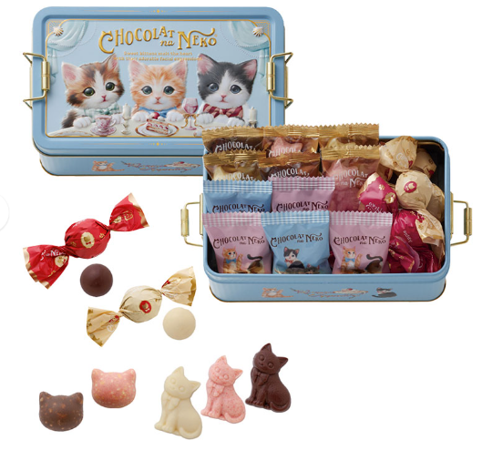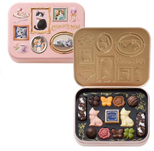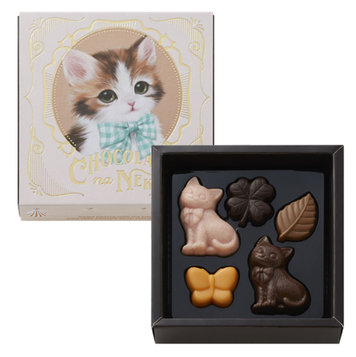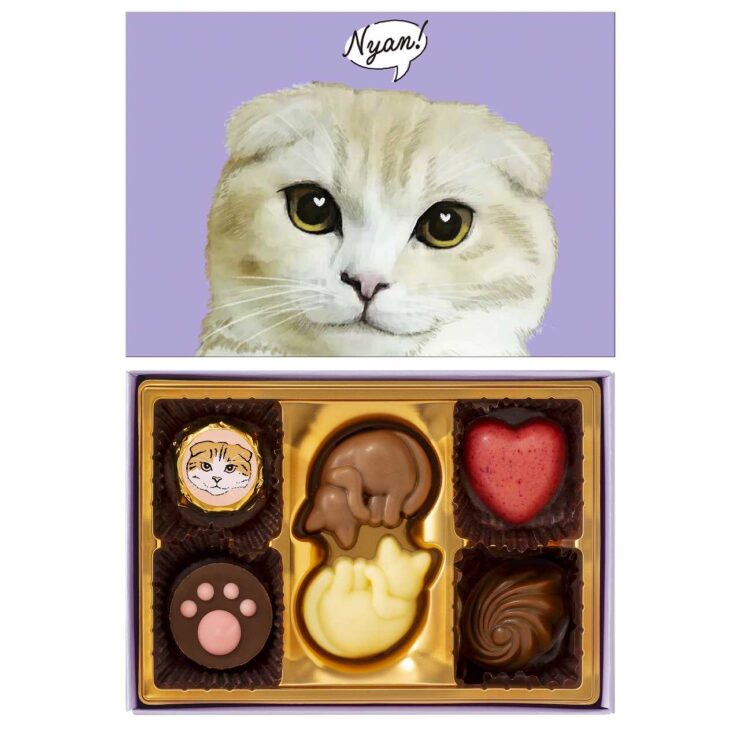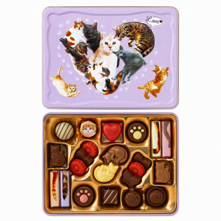 - 猫や肉球などをモチーフにした可愛らしいチョコレートアソート。