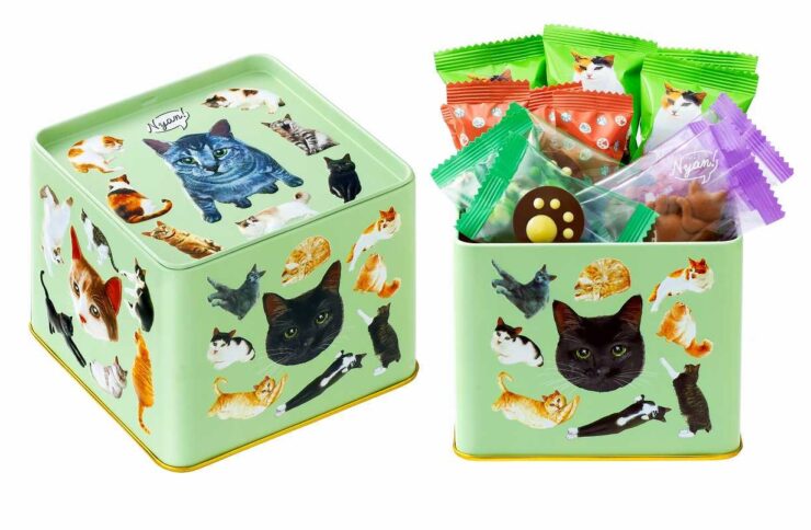 4種のチョコレート菓子を詰め合わせた猫にみゃみれた缶がたまらにゃい。