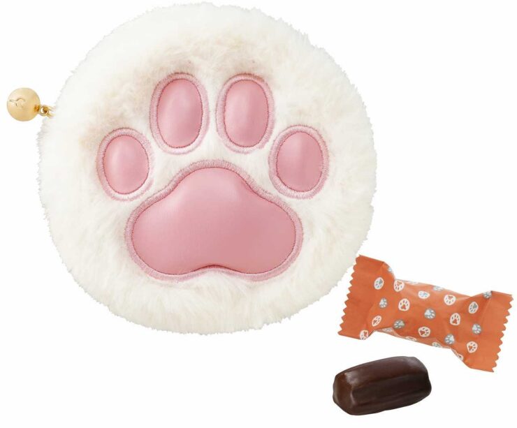 - 肉球の感触を表現したポーチにチョコレート菓子が入ってるにゃ。