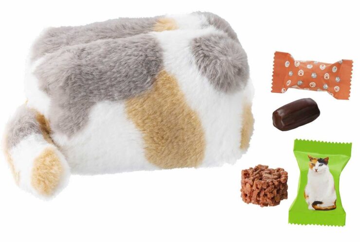 - 三毛猫柄のポーチにチョコレート菓子を2種詰め合わせました。食べた後も大活躍にゃ!