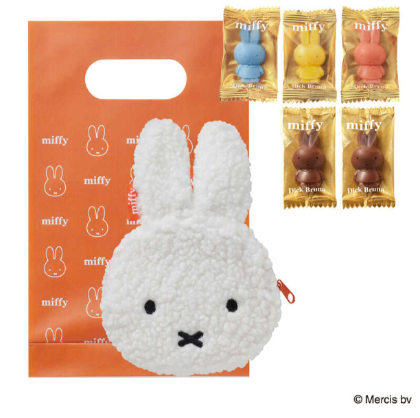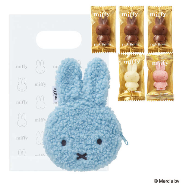 - もこもこボア素材のミッフィーフェイス型ポーチとチョコレートのセット