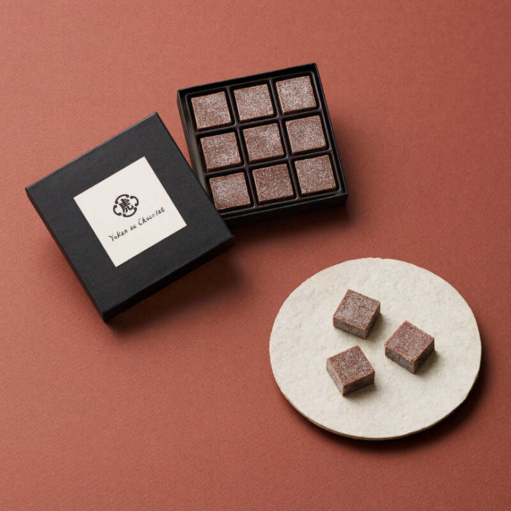 - カカオと小豆の風味が一体となったひとくちサイズの羊羹です。カカオのもたらす奥行きある味わいと、後味のよさをお楽しみください。