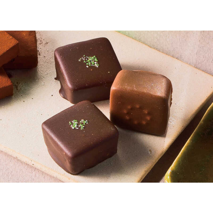 - 九州生まれの厳選された焼酎を、香りと風味を逃さぬよう丁寧にゼリーやガナッシュへ閉じ込め、さらに口どけのよいチョコレートで包み込んだ贅沢な逸品