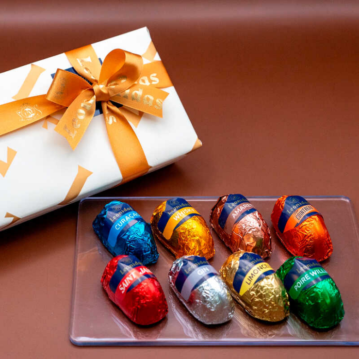 - 人気のリカーチョコを集めた大人のためのご褒美セット。ウイスキーやラム、コアントローなど、香り豊かなリキュールをダークチョコレートで包みました。