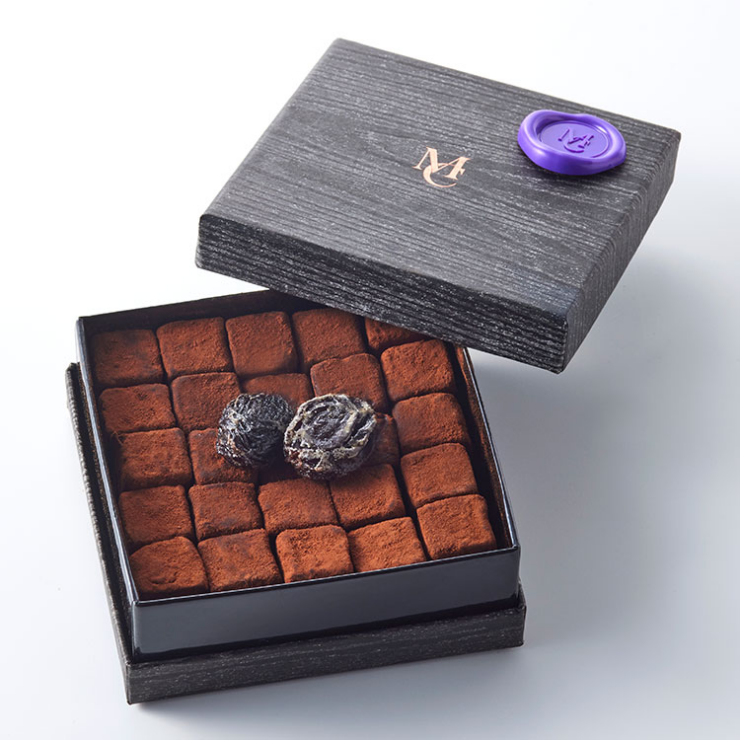 - 肉厚のある半生ラムレーズンを忍ばせたハイビターガナッシュはショコラ本来の甘美と苦みがコントラストを強めます。